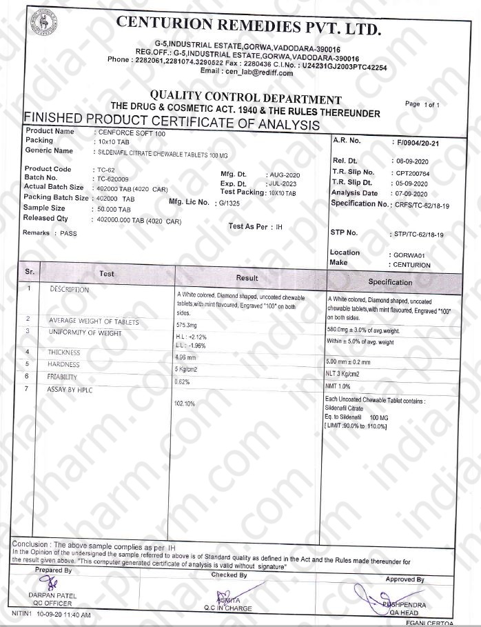 | Название препарата | Cenforce Soft 100 (Sildenafil Citrate Chewable Tablets) |