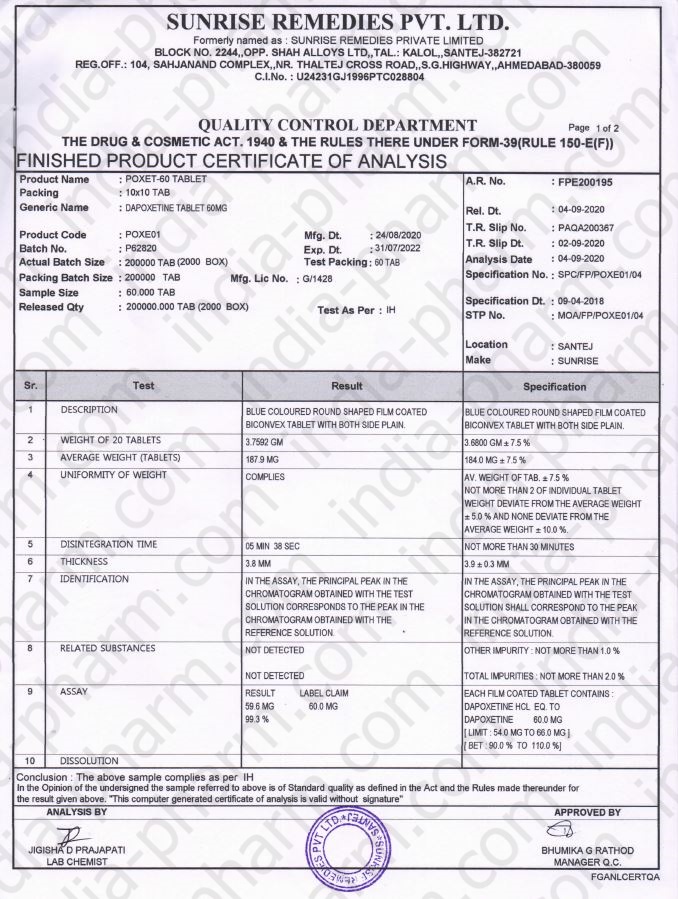 Купить качественный Дапоксетин 60 мг от проверенного производителя можно на сайте интернет-аптеки india-pharm.com.