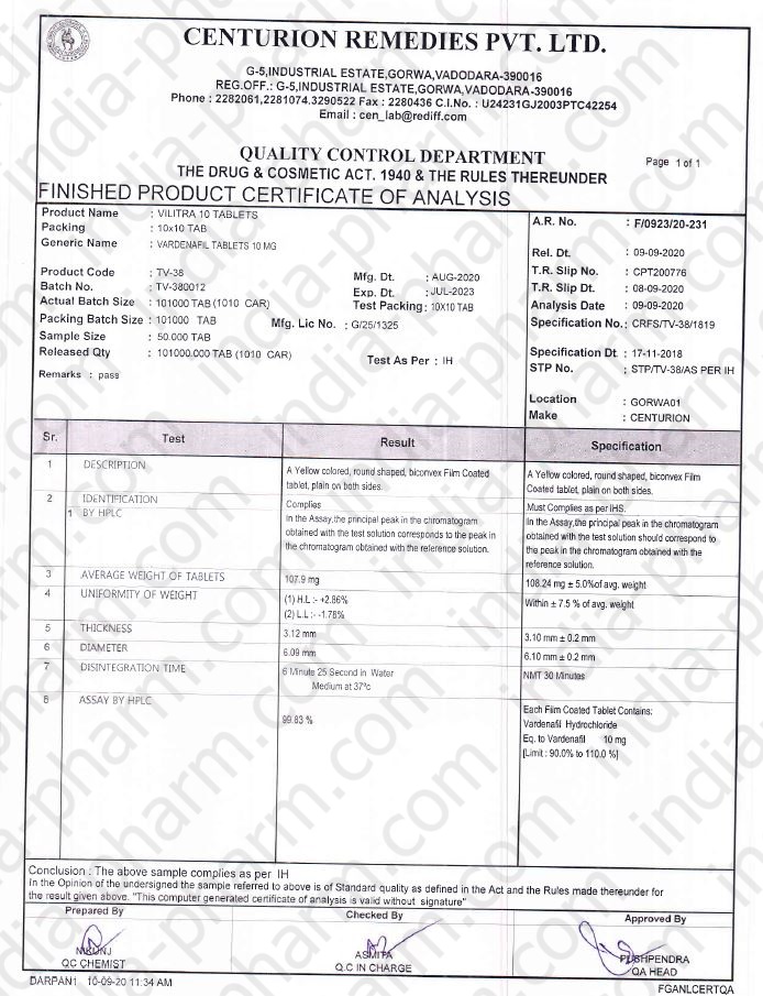 | Название препарата | Lovevitra 10 (Vardenafil Tablets 10 mg) |