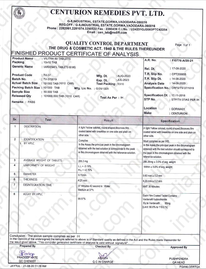 Препарат Левитра 60 мг является средством для лечения эректильной дисфункции у мужчин старше 18 лет. Дженерик позволяет с легкостью вернуть длительную эрекцию каждому пациенту. Таким веществом является варденафил – селективный ингибитор фермента ФДЭ-5. Vilitra позволяет усилить эрекцию при наличии сексуального возбуждения. В случае первичного приема дженерика рекомендуется употребление половины таб. Аналог виагры продается в виде таблеток, покрытых пленочной оболочкой. Оболочка включает в состав макрогол, гипромеллозу, диоксид титана и оксид железа. Блистер препарата для повышения потенции содержит 10 таблеток.